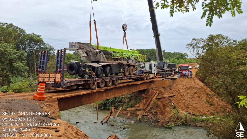 A retirada do caminhão guindaste que caiu na ponte sobre o Córrego Grande, conhecida como “Corgão”, na MT-560, entre os municípios de Sorriso e Tapurah, foi concluída com sucesso nesta quinta-feira (05). Esta foi a segunda tentativa da equipe responsável, que mobilizou uma grande força-tarefa devido ao peso do veículo e à complexidade da operação.