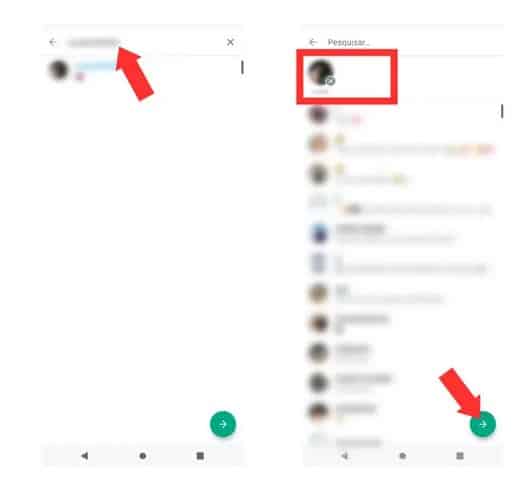 PASSO 2: Busque o nome do contato digitando-o e toque para adicioná-lo. Para confirmar a ação, clique na seta na parte inferior da tela.