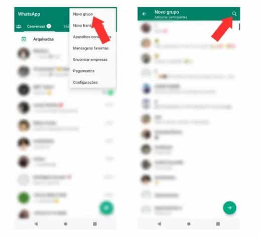 PASSO 1: Abra o WhatsApp e aperte nos três pontinhos na parte superior direita e clique em “Novo Grupo”. Depois, aperte o ícone da lupa para pesquisar um participante que você quer saber se te bloqueou.