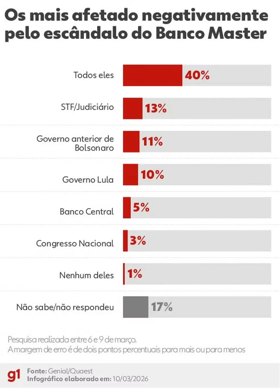 A pesquisa também perguntou aos entrevistados quem teve a imagem mais afetada negativamente após o escândalo envolvendo o Banco Master.
