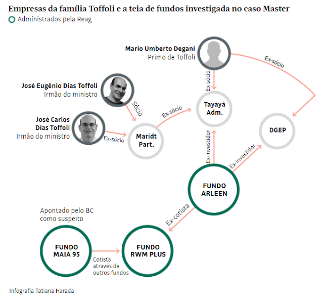 Diante da gravidade dos achados no celular de Vorcaro, o diretor-geral da PF, Andrei Rodrigues, entregou, na última segunda-feira (9), ao presidente ao presidente do STF, Edson Fachin, relatório apontando mensagens trocadas entre o banqueiro Daniel Vorcaro e seu cunhado, Fabiano Zettel, em que ambos discutem pagamentos para a empresa Maridt, que tem entre seus sócios o ministro Dias Toffoli.